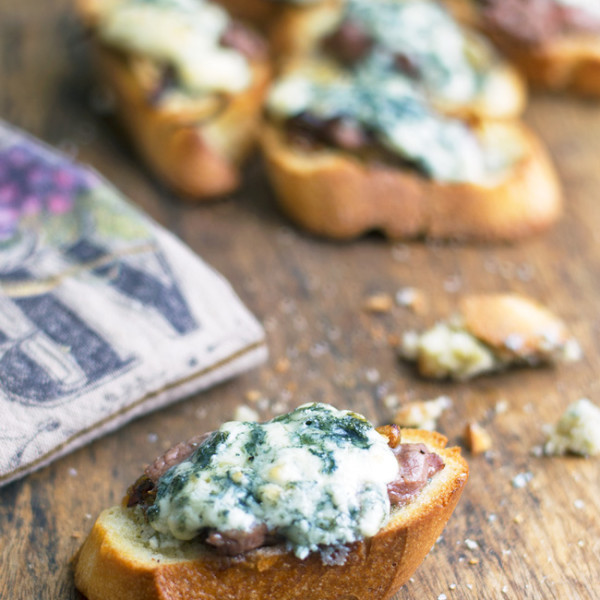 Caramelized Onion with Steak and Blue Cheese Bruschetta